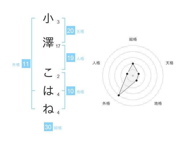 小澤 こはねさんを姓名の画数から五運を鑑定