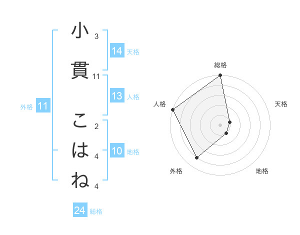 小貫 こはねさんを姓名の画数から五運を鑑定