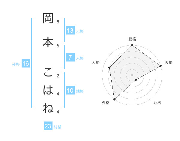 岡本 こはねさんの外格は16画の5点!