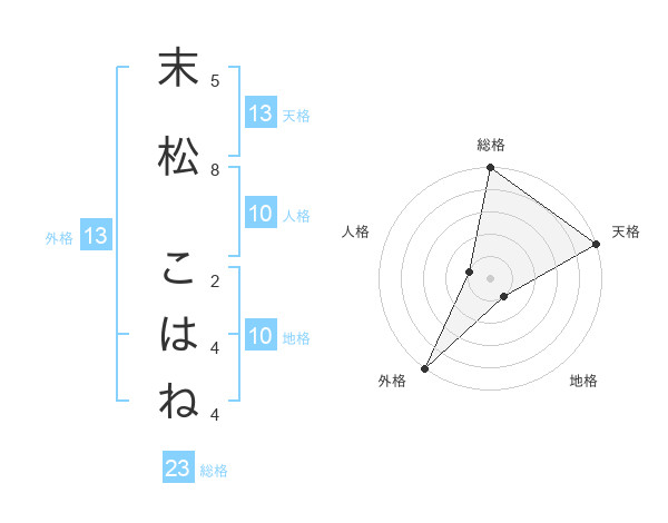 末松 こはねさんの天格は13画の5点!