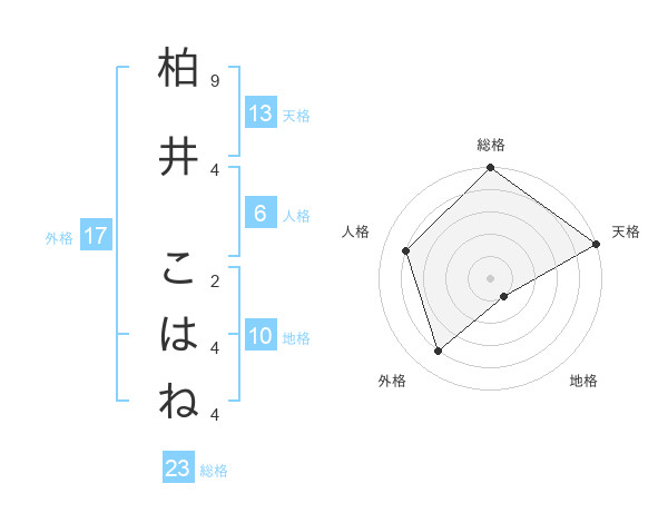 柏井 こはねさんの天格は13画の5点!