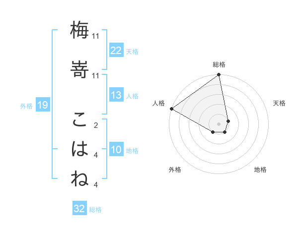 梅嵜 こはねさんの総格は32画の5点!