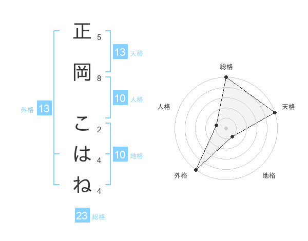 正岡 こはねさんの外格は13画の5点!