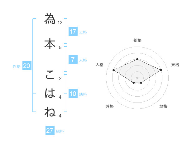 為本 こはねさんの総格は27画の3点!
