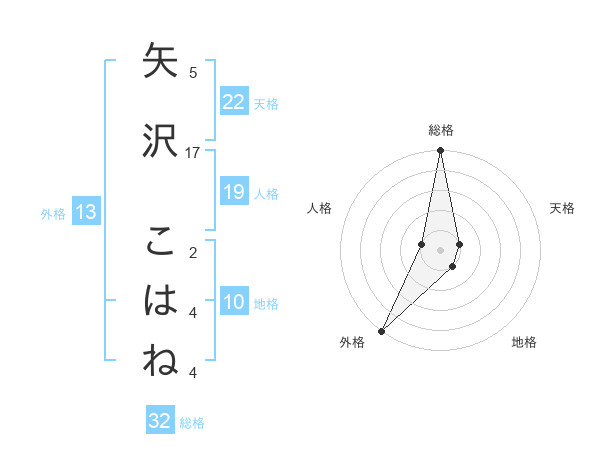 矢沢 こはねさんを姓名の画数から五運を鑑定