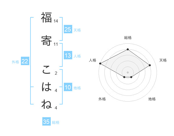 福寄 こはねさんを姓名の画数から五運を鑑定