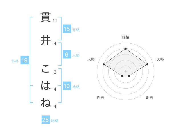 貫井 こはねさんの総格は25画の4点!