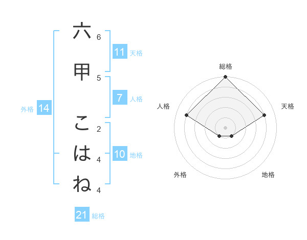 六甲 こはねさんを姓名の画数から五運を鑑定