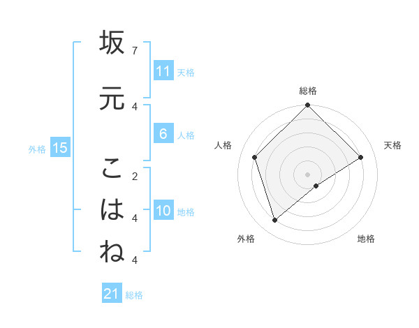 坂元 こはねさんの総格は21画の5点!
