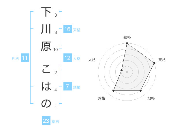 下川原 こはのさんを姓名の画数から五運を鑑定