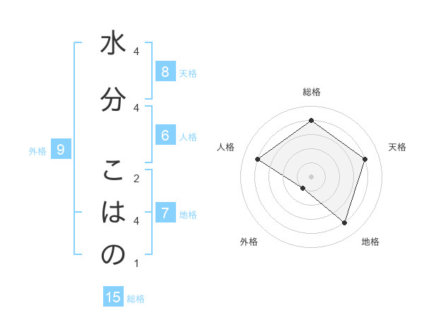 水分 こはのさんの総格は15画の4点!