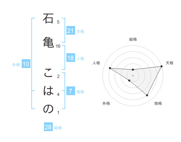 石亀 こはのさんを姓名の画数から五運を鑑定