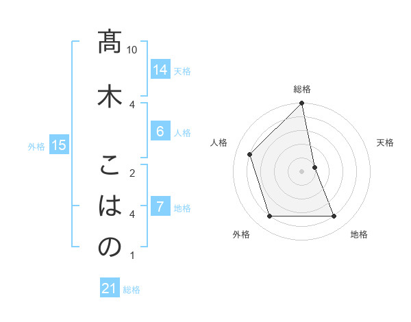 髙木 こはのさんの総格は21画の5点!