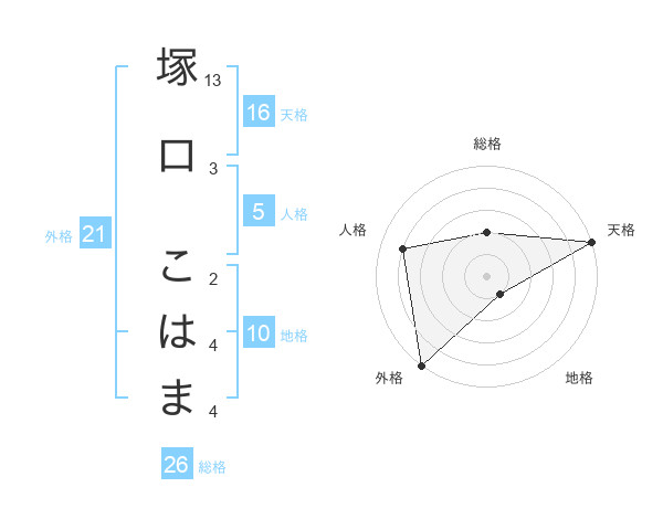 塚口 こはまさんの総格は26画の2点!