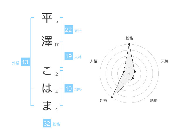 平澤 こはまさんを姓名の画数から五運を鑑定