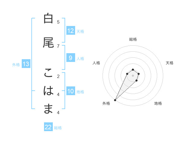 白尾 こはまさんの外格は13画の5点!