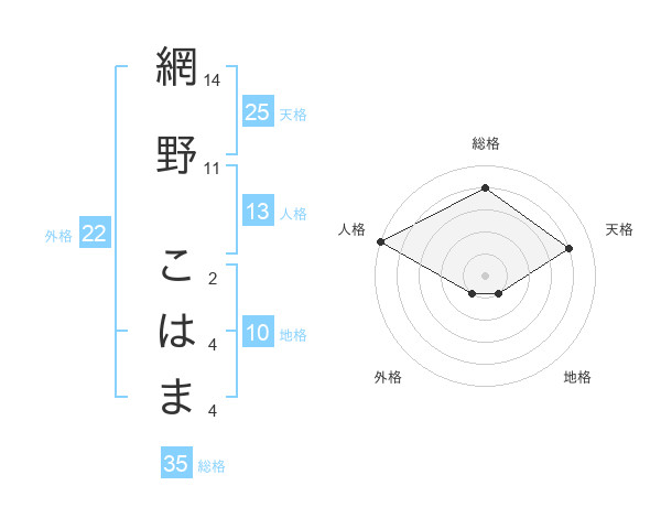 占い結果は姓名判断である以上、良い場合も悪い場合もありますが、決してお名前を誹謗中傷するものでなく、画数の自動計算によって得られたものです。また、本サイトの検索によって得られた鑑定結果で、第三者を誹謗中傷したり名誉を棄損するような行為を禁じます。