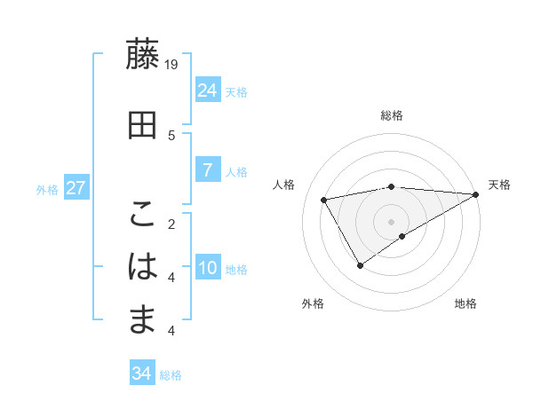 藤田 こはまさんを姓名の画数から五運を鑑定