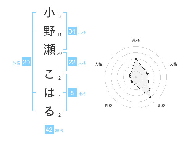 小野瀬 こはるさんの総格は42画の3点!