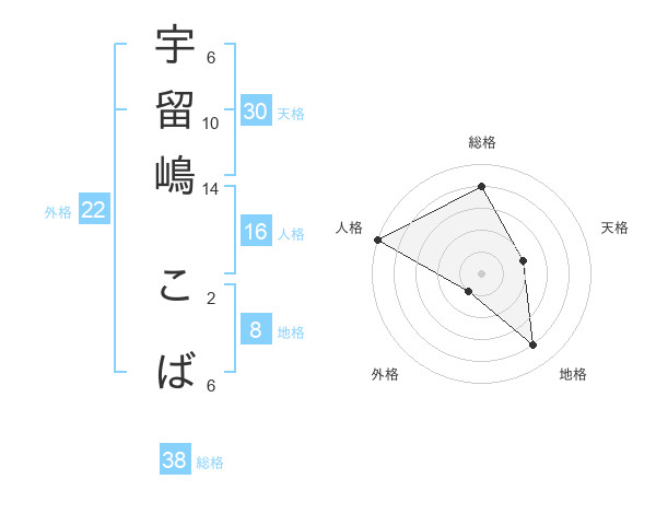 宇留嶋 こばさんを姓名の画数から五運を鑑定