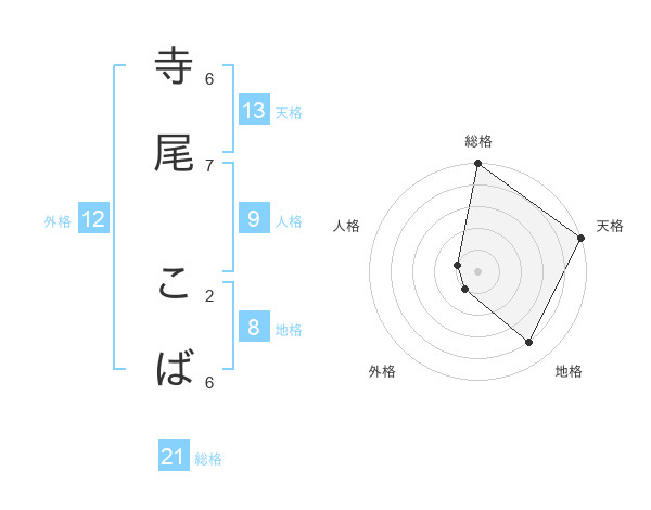 寺尾 こばさんの天格は13画の5点!