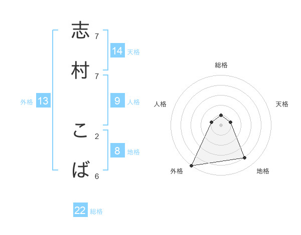 志村 こばさんの外格は13画の5点!