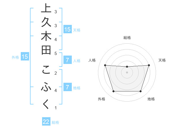 上久木田 こふくさんを姓名の画数から五運を鑑定