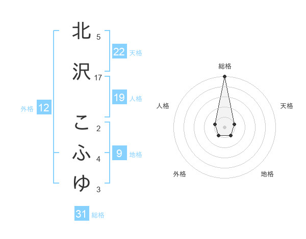 北沢 こふゆさんの総格は31画の5点!