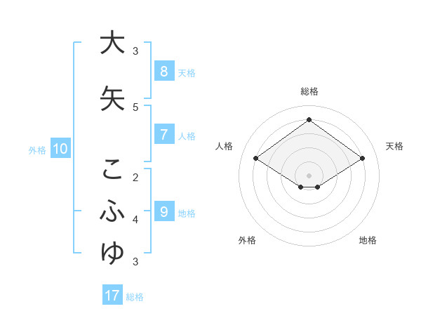 大矢 こふゆさんを姓名の画数から五運を鑑定
