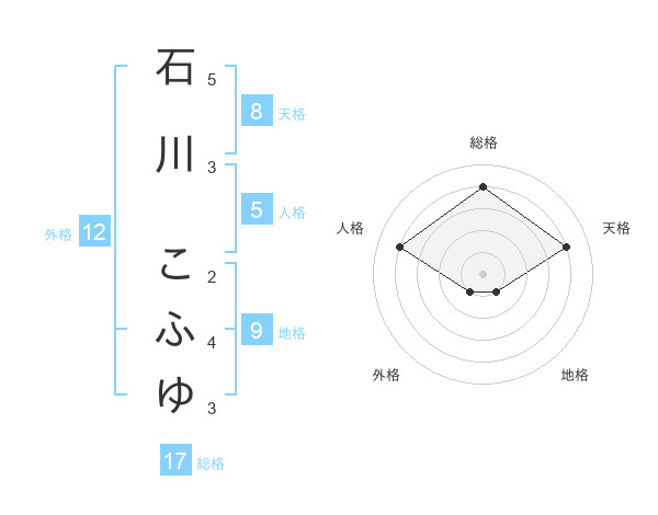 石川 こふゆさんを姓名の画数から五運を鑑定