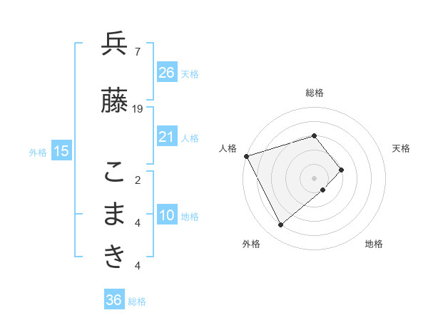 兵藤 こまきさんを姓名の画数から五運を鑑定