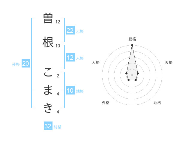 曽根 こまきさんを姓名の画数から五運を鑑定