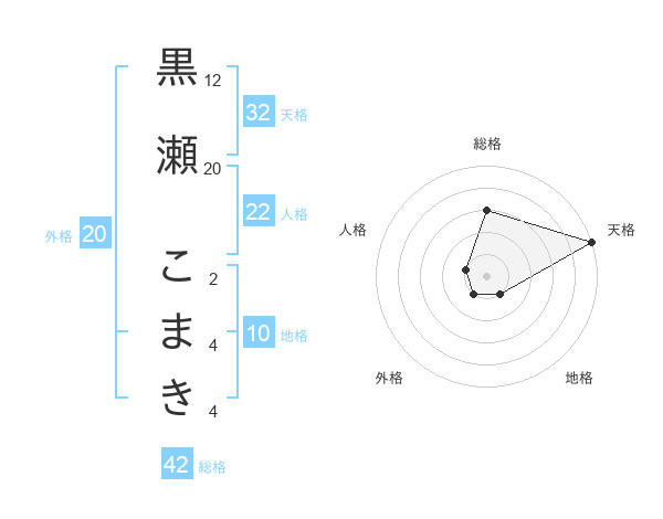 黒瀬 こまきさんの天格は32画の5点!
