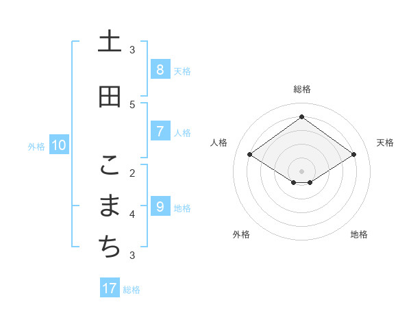 土田 こまちさんの総格は17画の4点!
