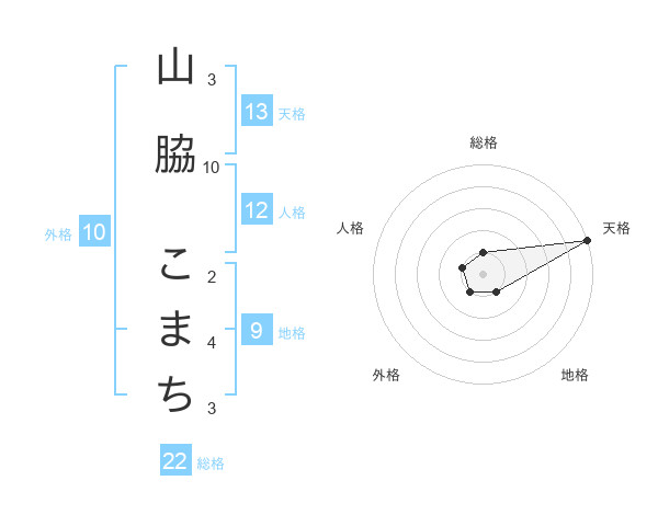 山脇 こまちさんを姓名の画数から五運を鑑定