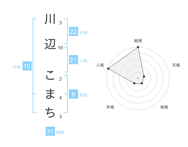 川辺 こまちさんの総格は31画の5点