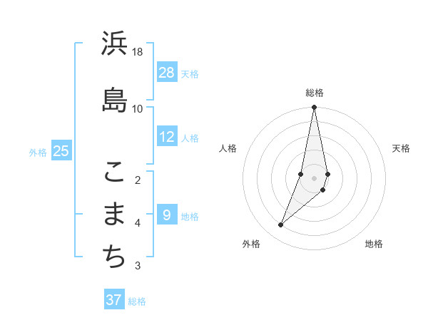 浜島 こまちさんを姓名の画数から五運を鑑定