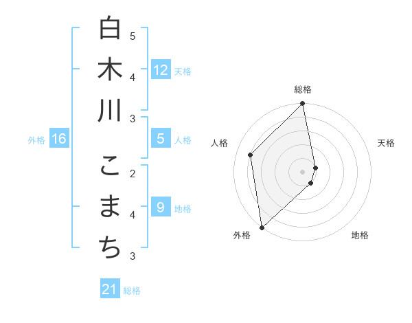 白木川 こまちさんを姓名の画数から五運を鑑定