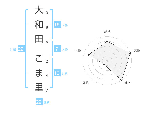 大和田 こま里さんを姓名の画数から五運を鑑定