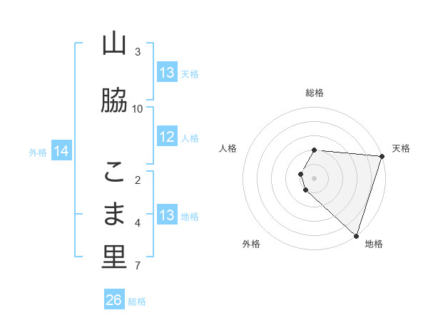山脇 こま里さんを姓名の画数から五運を鑑定