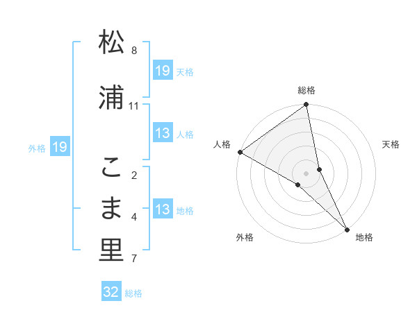 松浦 こま里さんの総格は32画の5点