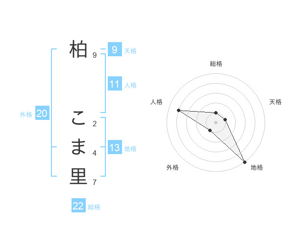 柏 こま里さんの総格は22画の1点!