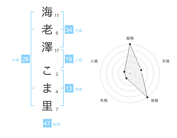 海老澤 こま里さんを姓名の画数から五運を鑑定