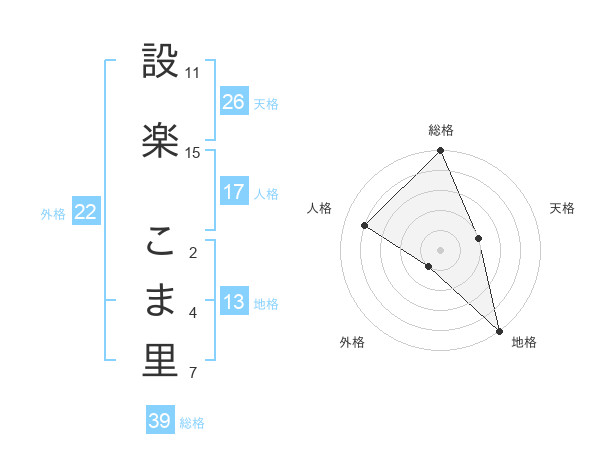 設楽 こま里さんを姓名の画数から五運を鑑定