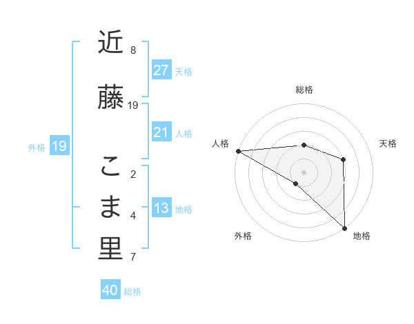 近藤 こま里さんを姓名の画数から五運を鑑定
