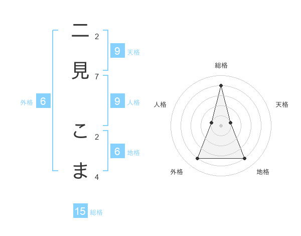 二見 こまさんの総格は15画の4点!