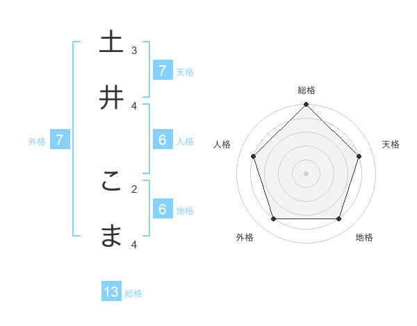 土井 こまさんの総格は13画の5点!