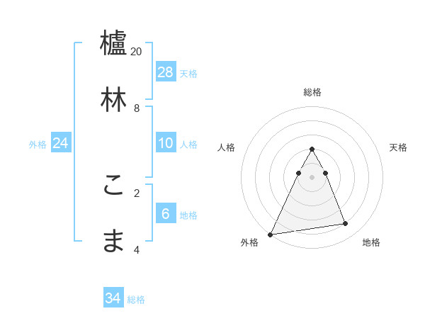 櫨林 こまさんの総格は34画の2点!