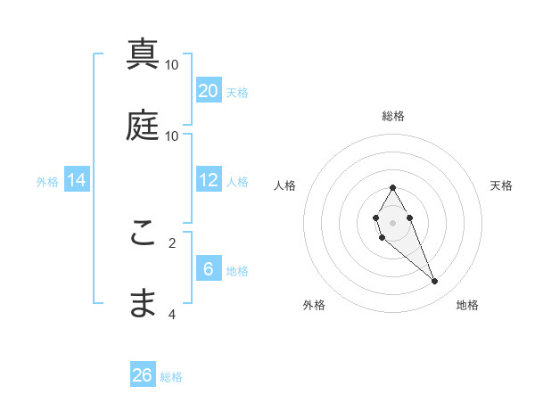 真庭 こまさんの総格は26画の2点!