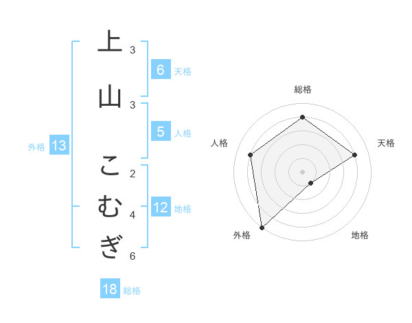 上山 こむぎさんの外格は13画の5点!